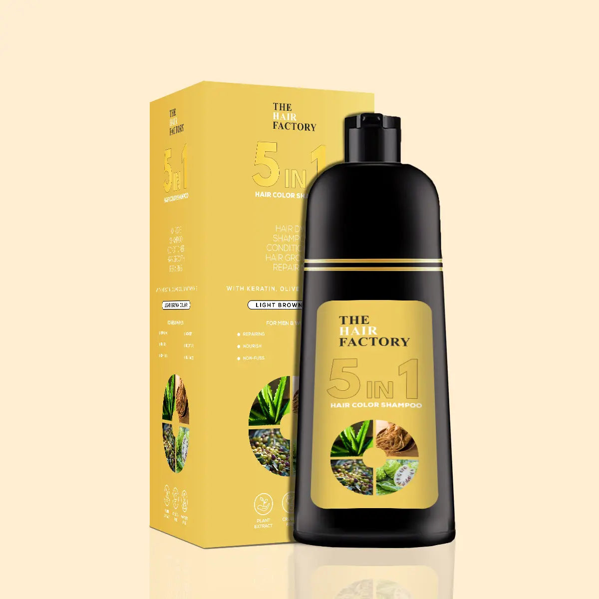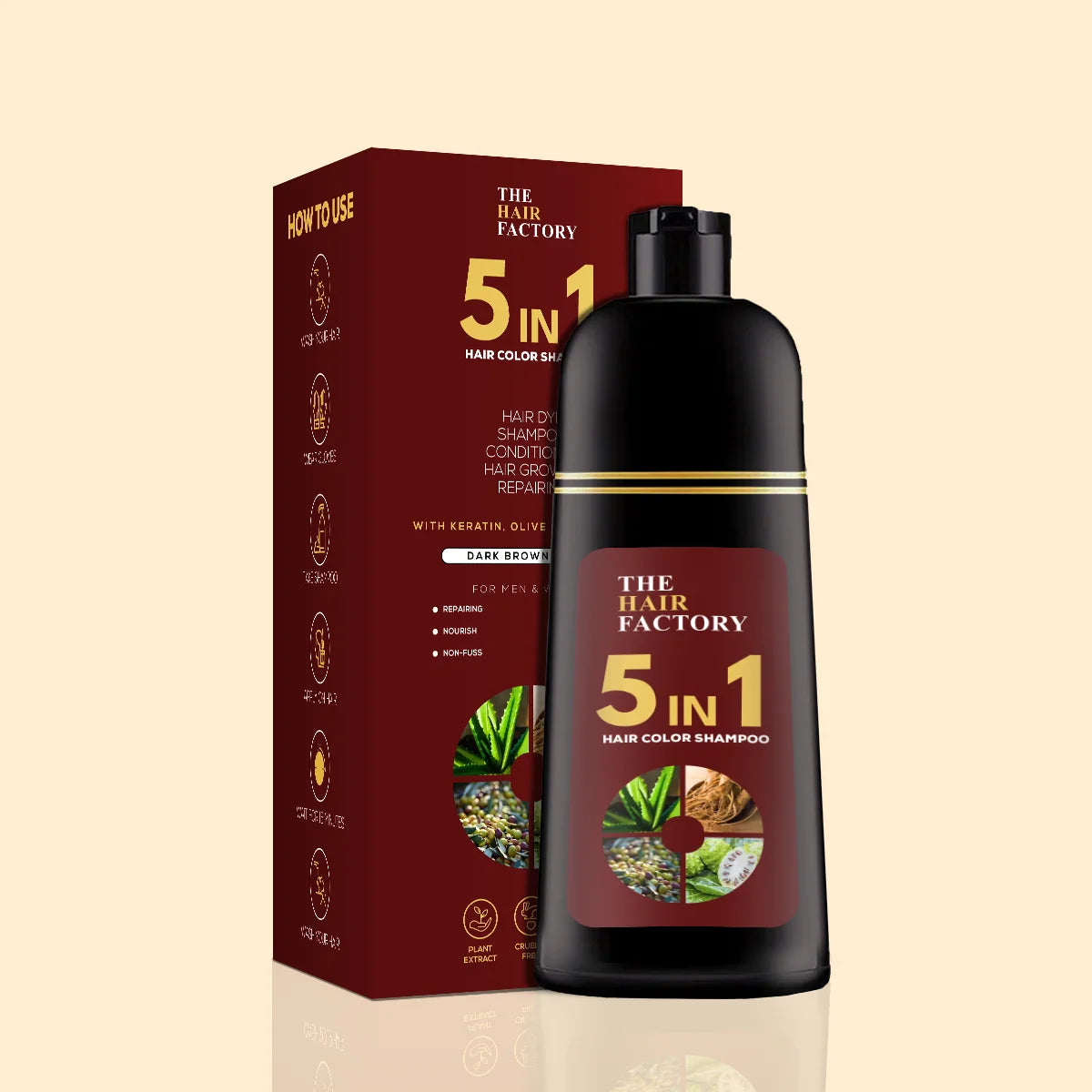 This 5 in 1 hair color shampoo provides complete grey coverage with 100% color accuracy. Enriched with keratin, olive oil, vitamin E, and ginseng, it is ammonia-free and instantly colors hair in just 15 minutes. Achieve vibrant, healthy-looking hair with ease.